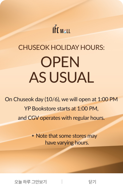 When you visit our website, it may store or retrieve information on your browser, mostly in the form of cookies. This information might be about you, your preferences, or your device, and is primarily used to make the site work as you expect it to. The information does not usually directly identify you, but it can provide you with a more personalized web experience. At IFC Mall, we respect your right to privacy, so you can choose not to allow some types of cookies. To learn more and adjust your settings, click on the different category headings. Please note that blocking some types of cookies may affect your site experience and the services we can offer.
